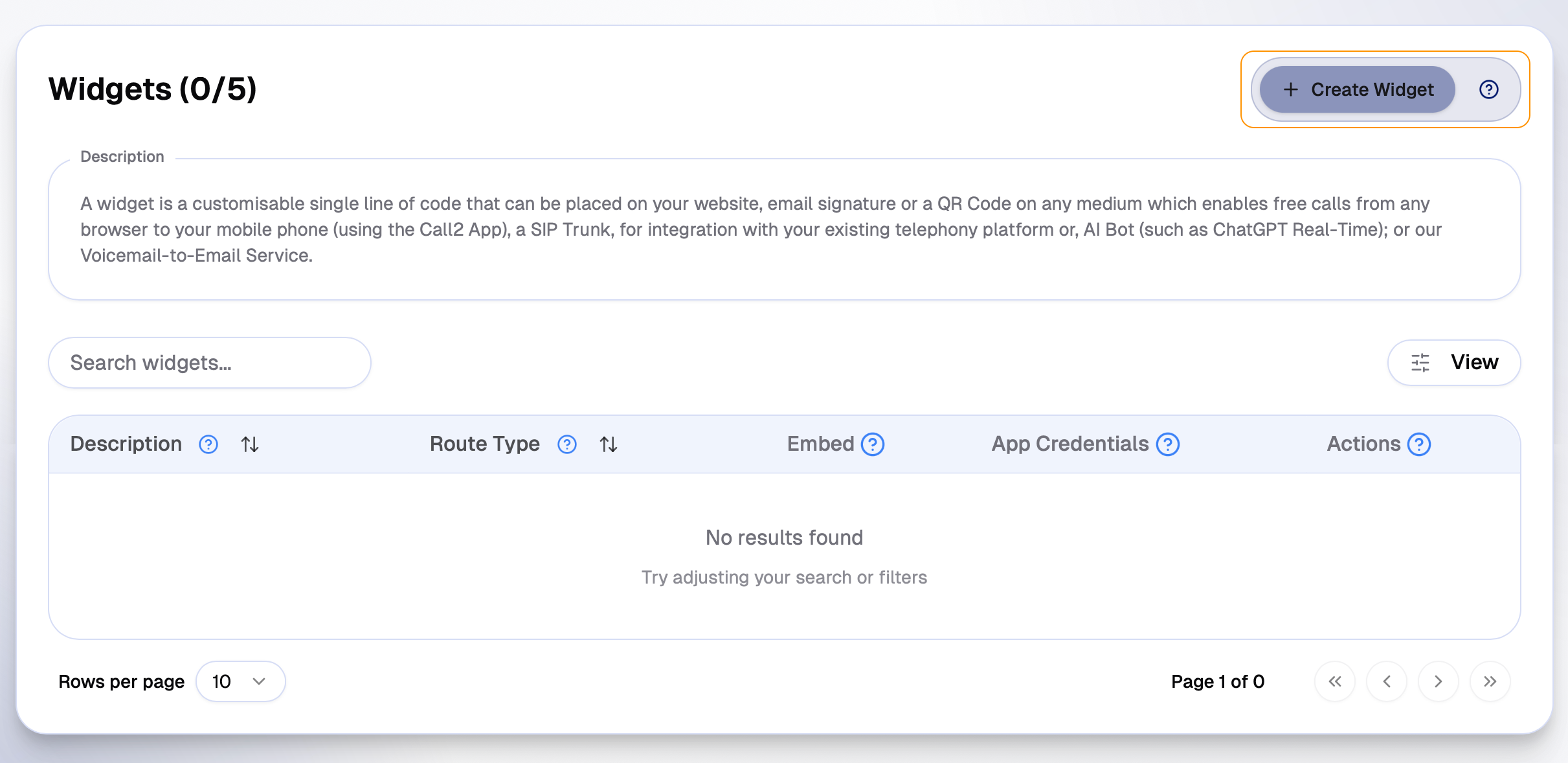 Now we can give our Widget a "friendly description" - this description will appear on Call History so you know which widget was used when a call has been made: